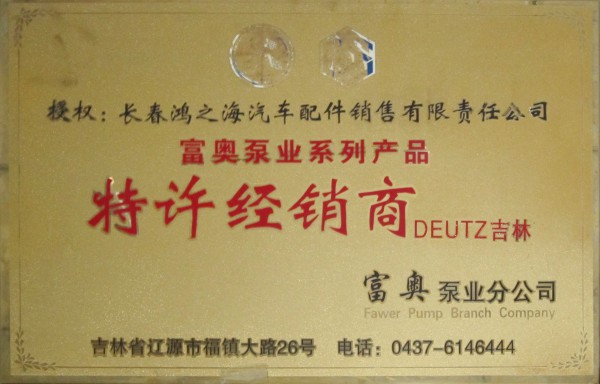 证书编号: 005 证书名称: 富奥泵业系列产品特许经销商 发证机构: 富奥泵业分公司 生效日期: 2017年01月01日 截止日期: 2027年01月01日 认证简介: 汽车产业开发区明鑫汽车配件经销处,个体工商户,经营汽车配件、轮胎、润滑油,批发零售。富奥泵业系列产品特许经销商