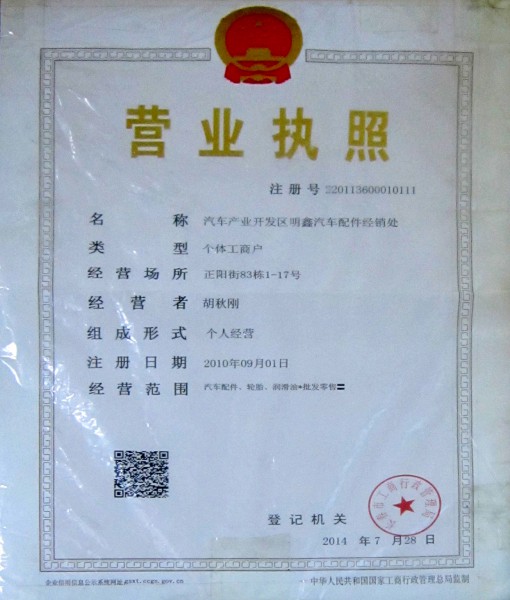 汽车产业开发区明鑫汽车配件经销处,个体工商户,经营汽车配件、轮胎、润滑油,批发零售。